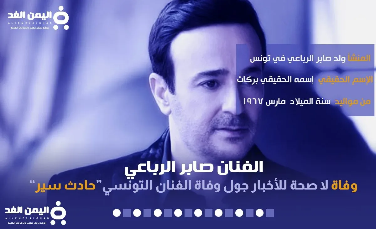 من الفنانين المشهورين في العالم العربي بشكل كبير هو الفنان التونسي صابر الرباعي, وننشر لكم اليوم م خلال المتابعة اليومية عبر اليمن الغد حقيقة الأخبار التي تم تداولها عبر ماقع التواصل الإجتماعي فيس بوك وكذلك تويتر وبعض التطبيقات الأخرى حول وفاة صابر الرباعي.