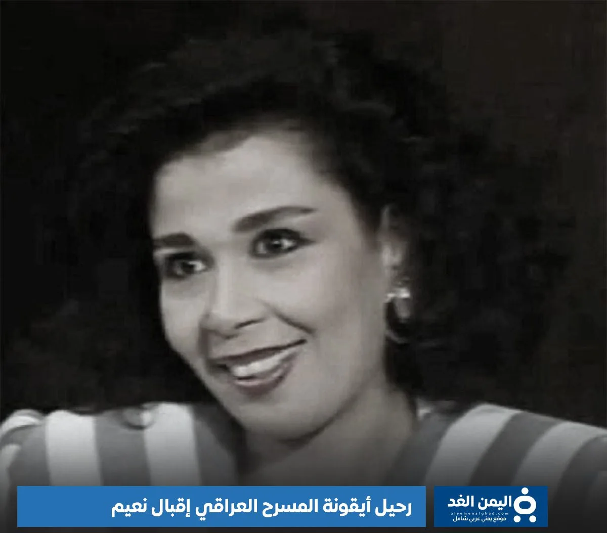 رحيل الفنانة إقبال نعيم عن عمر ناهز 67 عاماً بعد معاناتها مع المرض, وكانت النقابة العراقية قد نعت عبر بيان رسمي لها في رحيل أيقونة الفن العراقي.