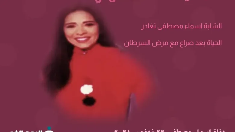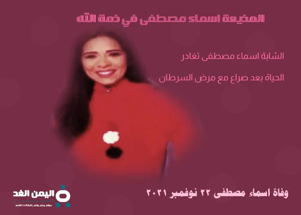 سبب وفاة اسماء مصطفى المذيعة الشابه ومتى جنازة أسماء وماهو مرض الإعلامية الشابة والتي توفت اليوم الإثنين 22 نوفمبر 2021 وذلك بعد صراع طويل مع المرض عانة منه, كما سوف نتعرف على من هي الإعلامية الشابة .