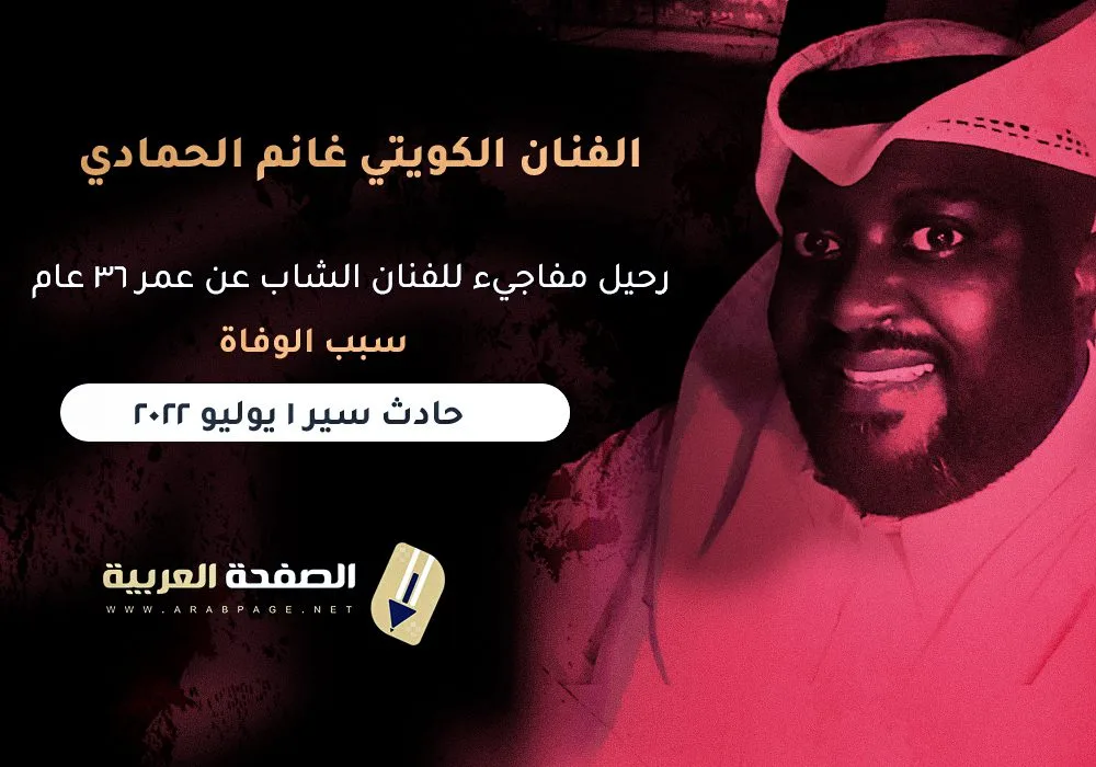 #غانم_الحمادي وفاة الفنان الكويتي غانم الحمادي عن عمر 36 عام وذلك بسبب حادث سير مؤلم ادى بحياته اثناء عودته إلى منزله وذلك يوم الجمعة 1 يوليو 2022.https://t.co/BL0blJVVyS pic.twitter.com/fxlhLhq5C1