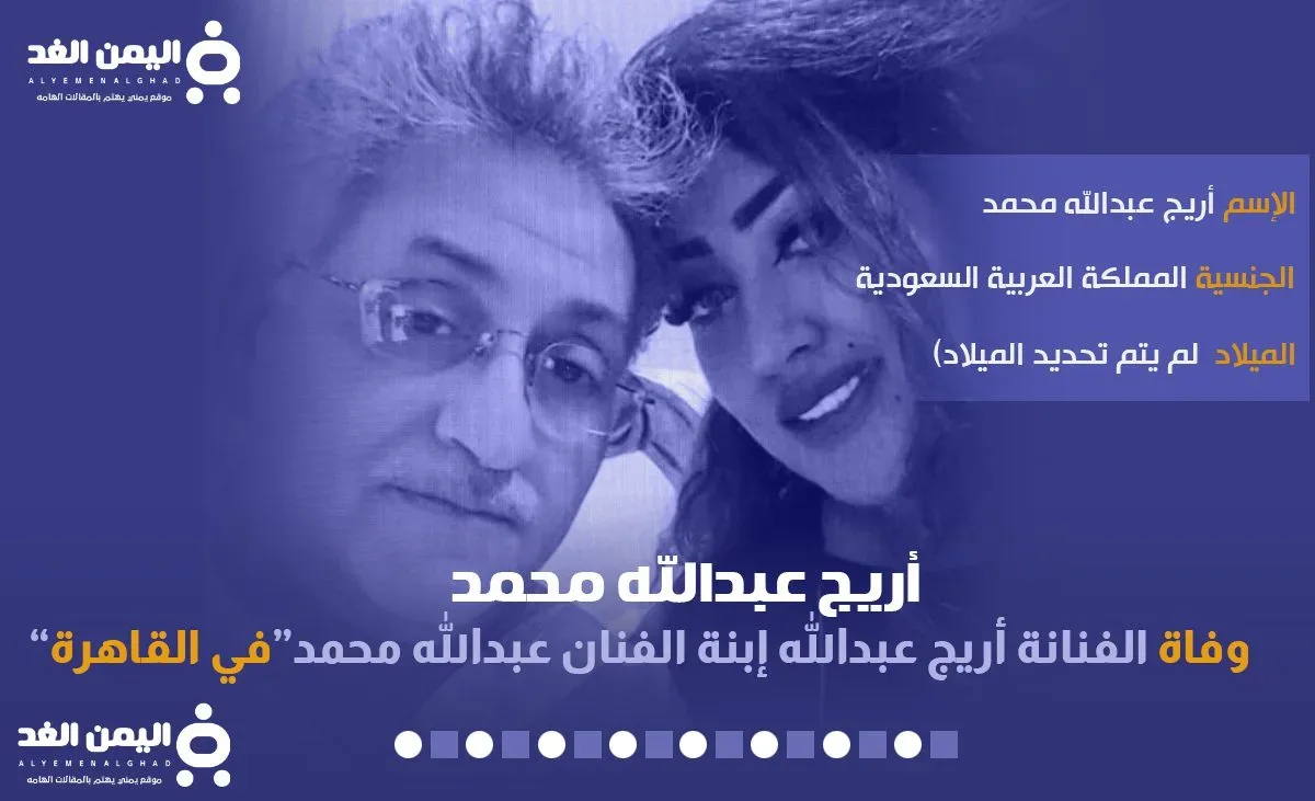 سبب وفاة اريج عبدالله محمد من هي وكم عمر أريج وحسابها على انستقرام وايضاً سناب شات في خبر محزن تم تناقل قبل ساعات وفاة أبنة الفنان عبدالله محمد وهي الفنانة أريج دون أن يتم الحديث حول ماهو سبب موت الفنانة أريج عبدالله محمد.