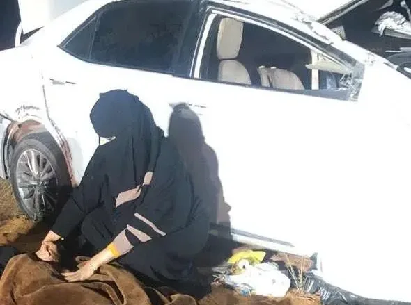 وشارك الكثيرون من رواد مواقع التواصل الإجتماعي صور الممرضة مريم الشمري اثناء عملها في إزعاف المصابين بالحادث المروري قبل أن تأتي سيارة الهلال الأحمر لإزعافهم.