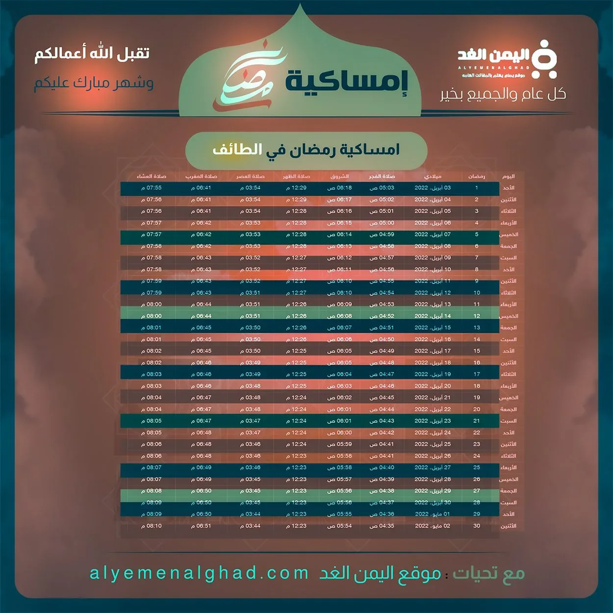 امساكية رمضان ١٤٤٣ الطائف امساكية رمضان 2022 في السعودية تحميل واتس اب جوال