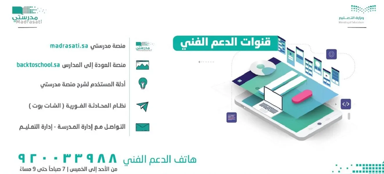 رقم المجاني الدعم الفني لمنصة مدرستي