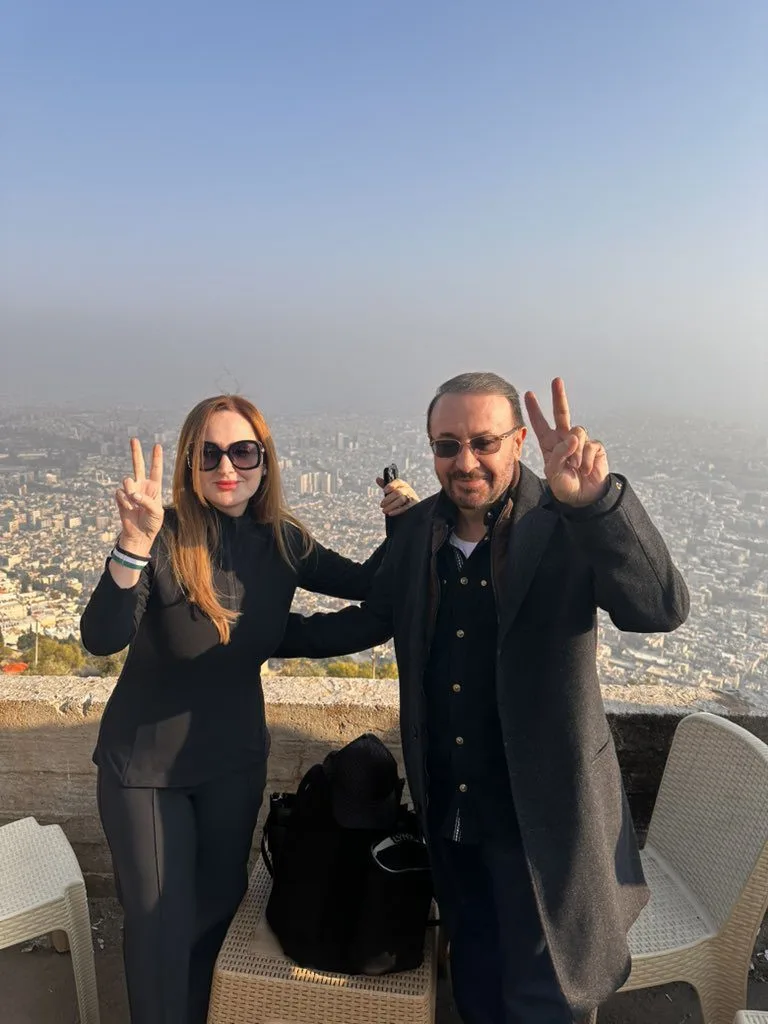 وكانت هناك العديد من البحث حول ماهو إسم زوجة فيصل القاسم الحقيقي وكذلك ماهي ديانة زوجة القاسم وإنتماءها, وهذة الأستفسارات جاءت بعد زيارتها مع زوجها إلى دمش لاول مرة بعد سنوات طويلة من البعد.