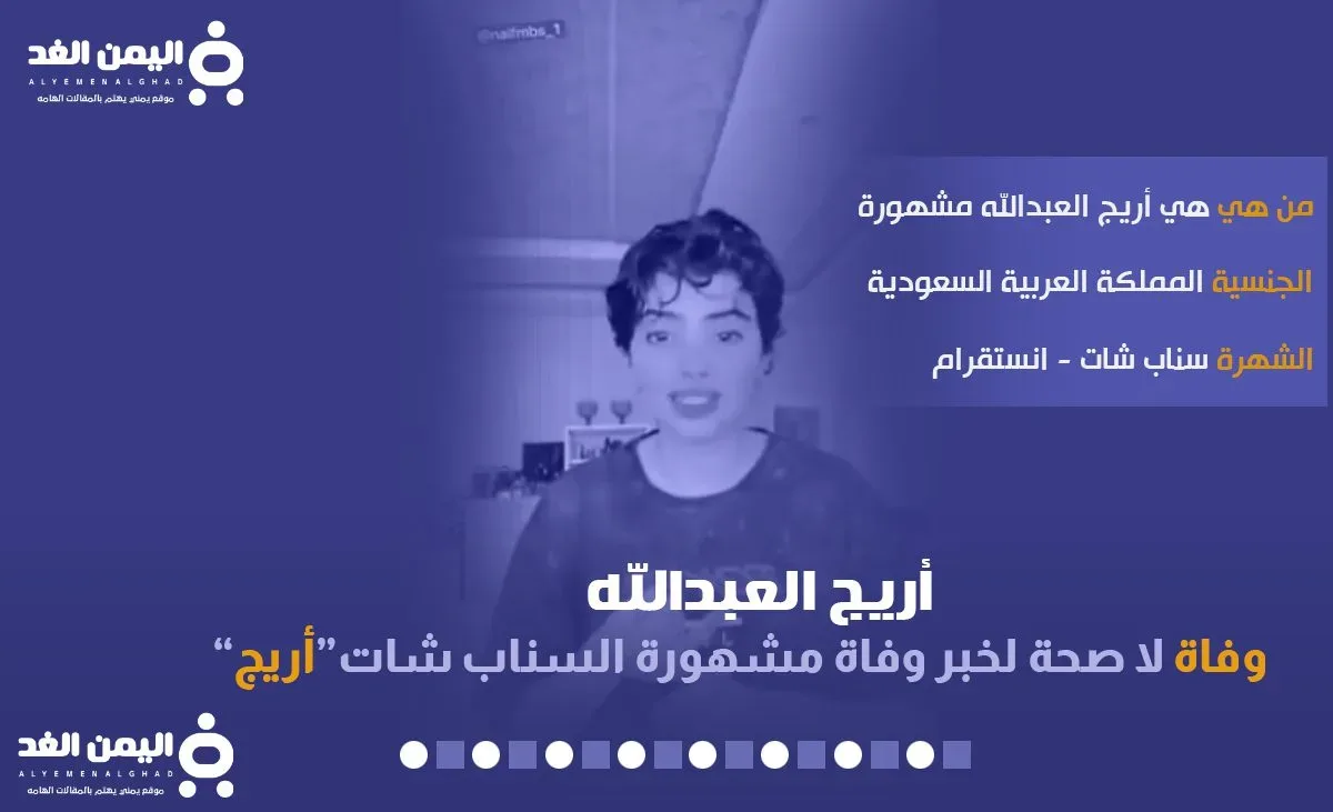 حقيقة وفاة أريج العبدالله مشهورة السناب شات من هي انستقرام تويتر سناب وماهو سبب انتشار خبر وفاة مشهورة سناب شات الناشطة الإجتماعية عبر سناب شات وكذلك تويتر وايضاً حسابها على انستقرام اريج العبدالله