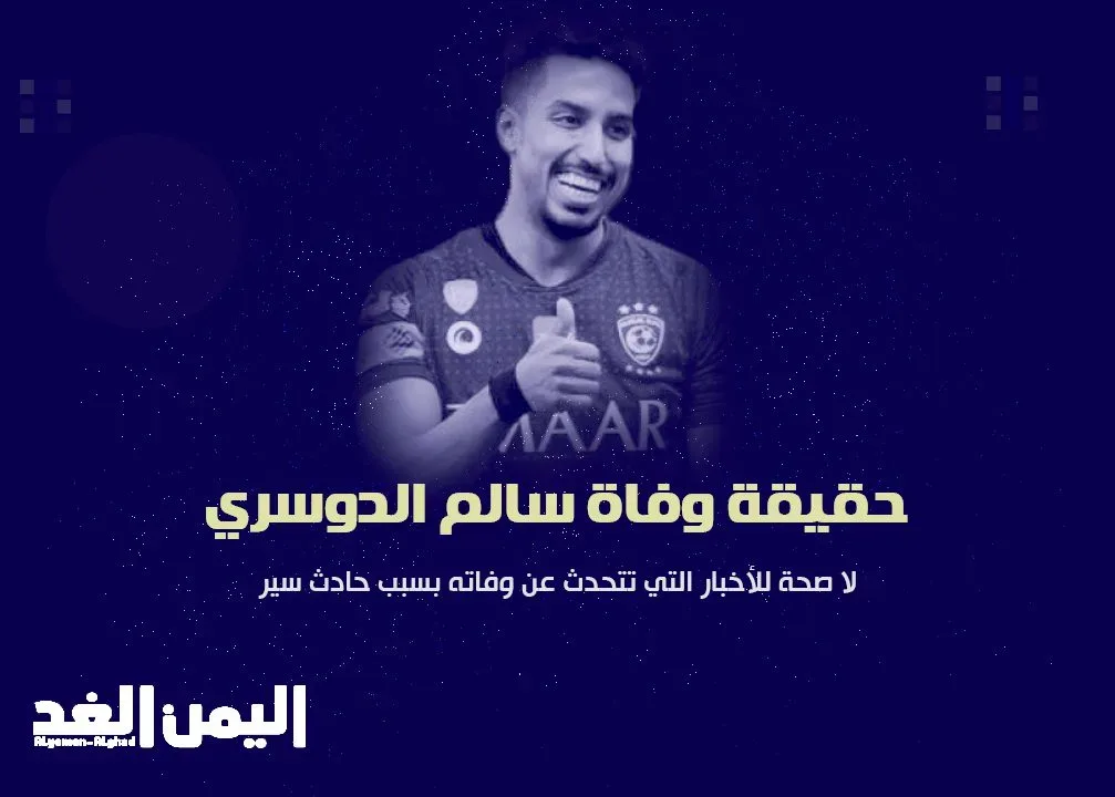 لا صحة للأخبار التي يتم تداولها في بعض الصفحات وكذلك عبر بعض التطبيقات كما هو في تطبيق واتس اب وغيرها من التطبيقات حول وفاة سالم الدوسري اللاعب السعودي.