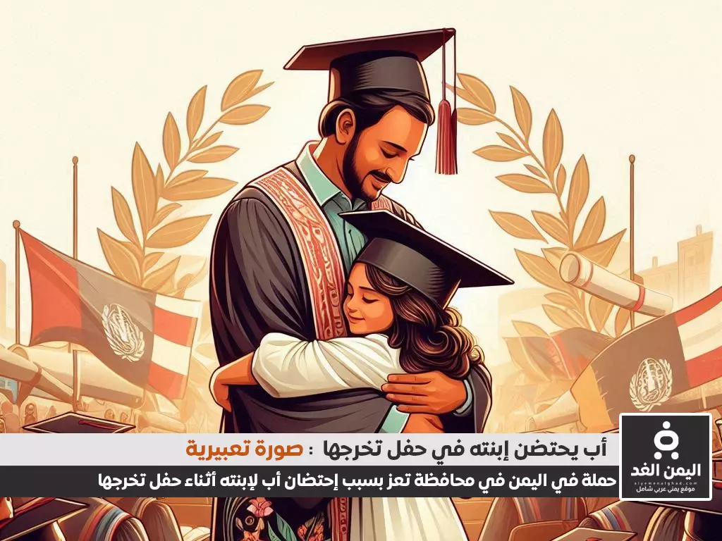 أب يحتضن إبنته في حفل تخرجها في تعز وحالة من الغضب بسبب ذلك الفيديو
