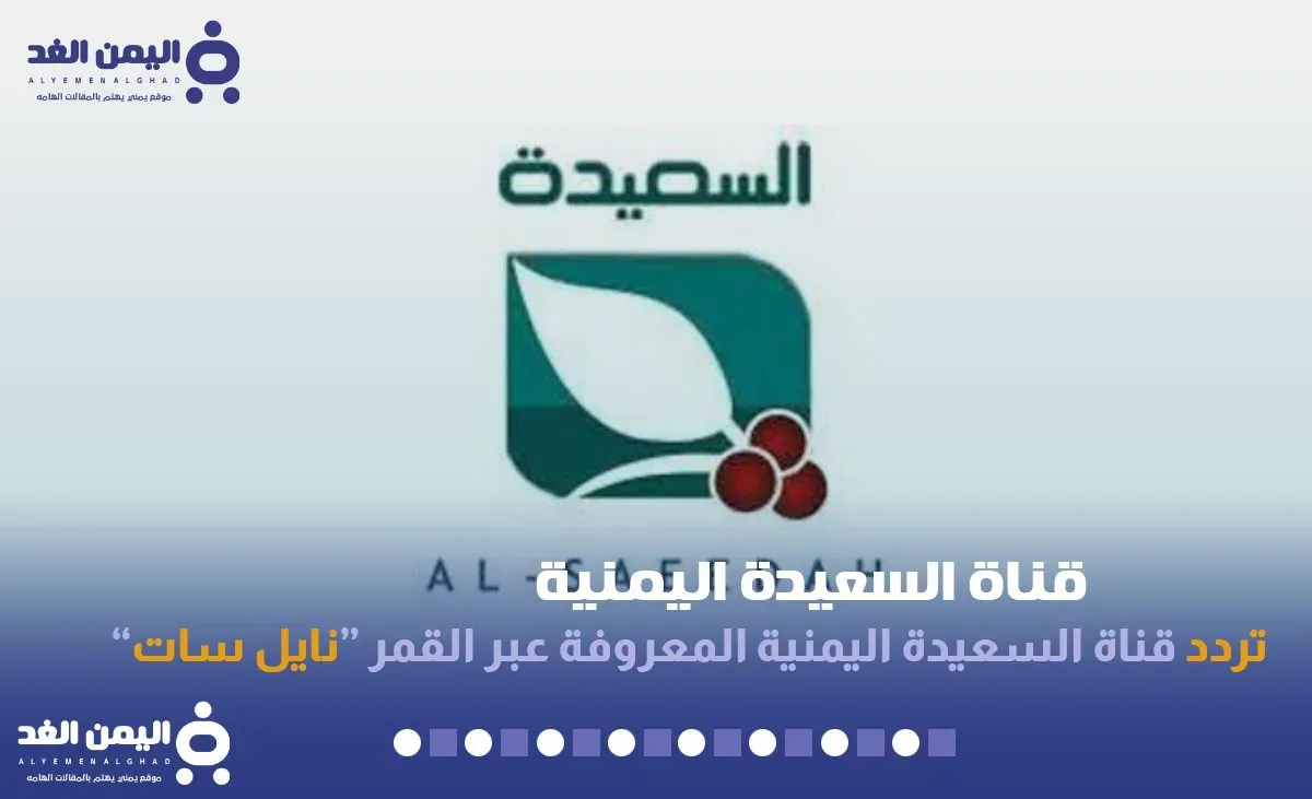 تردد قناة السعيدة مباشر اليوم 2025 عبر القمر الصناعي نايل سات ومشاهدة البث المباشر عبر الإنترنت سواء يوتيوب او من خلال صفحتهم الرسمية على الفيس بوك والذي يقومون بعرض البرامج والأخبار وكذلك المسلسلات اليمنية وغير اليمنية.