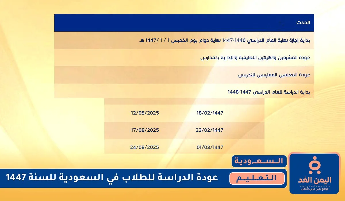 بداية الدراسة للعام الدراسي 1447-1448 01/03/1447 24/08/2025