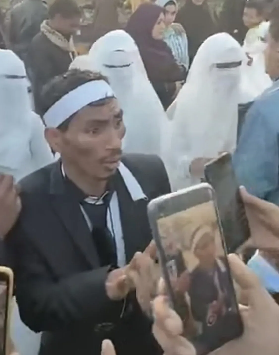 بعد التواصل مع العريس المصري وسؤاله عن السبب ، قال إن والدته أصرت عليه كثيرًا وأرادت إعفاء والدته من هذه المشكلة ، فقرر الزواج من الأربعة مرة واحدة.