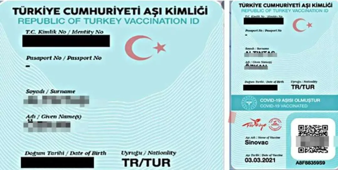 يمكنك الحصول على بطاقة التطعيم في تركيا من خلال تطبيق iNaz health ، بعد تسجيل الدخول إلى الصفحة الرئيسية لموقع iNBZ ، ستجد في أعلى الصفحة زرًا مكتوبًا عليه “Covid-19” (كوفيد -19 عاصي دورومو)بعد النقر عليها ستجد معلومات اللقاح وأسفل تلك المعلومات ستجد شيئًا مكتوبًا عليها بطاقة لقاح ، لكن الشخص الذي لم يكمل الجرعات لا يمكنه استخراج هذه البطاقة.