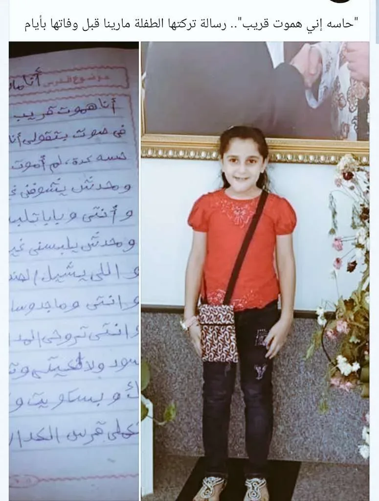 وفاة الطفلة مارينا يشعل مواقع التواصل الإجتماعي لا سيما بعد معرفة مرضها وماهو سبب وفاتها وكذلك نشر رسالة الطفلة مارينا التي كتبتها لوالدتها وحثتها على عدم غسلها بعد وفاتها.