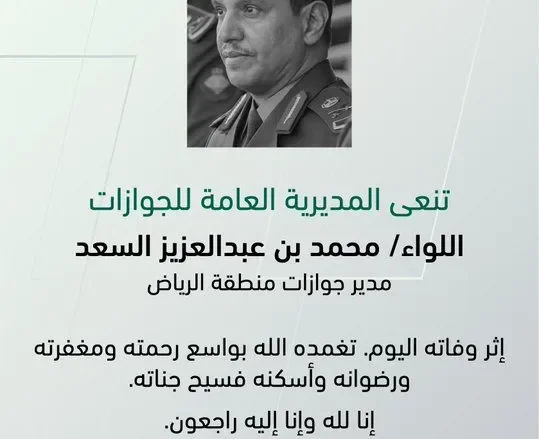 من هو محمد السعد مدير جوازات الرياض وماهو سبب وفاة مدير الجوازات في منطقة الرياض