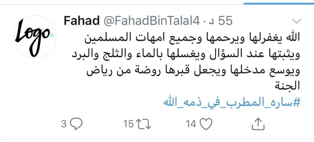 #ساره_المطرب_في_ذمه_الله وفاة سيدة ليست معروفة وليست مشهورة وإنما تم رفع الهاشتاق للدعاء لها والترحم عليها.https://t.co/Z2sjk3P8Hm