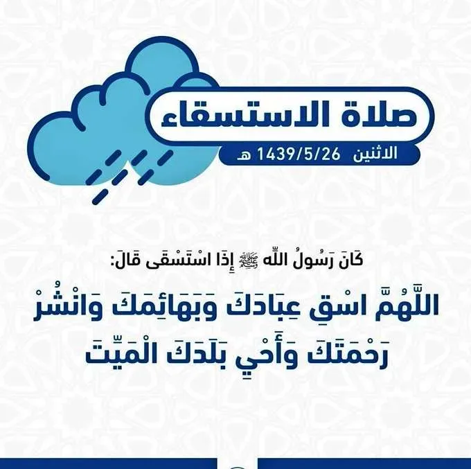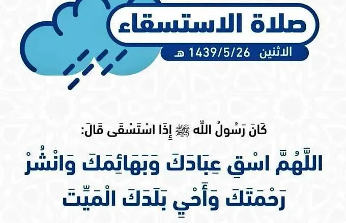 وننشر لكم من خلال اليمن الغد البيان كما تم نشره من خلال بعض المواقع المحلية السعودية حول صلاة الإستسقاء في المملكة العربية السعودية لطلب من الله المطر وإنزال المطر لتحيا الأرض والعباد بما ينعمه الله علينا جميعاً.