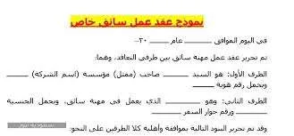 نموذج عقد عمل سائق خاص عربي انجليزي doc