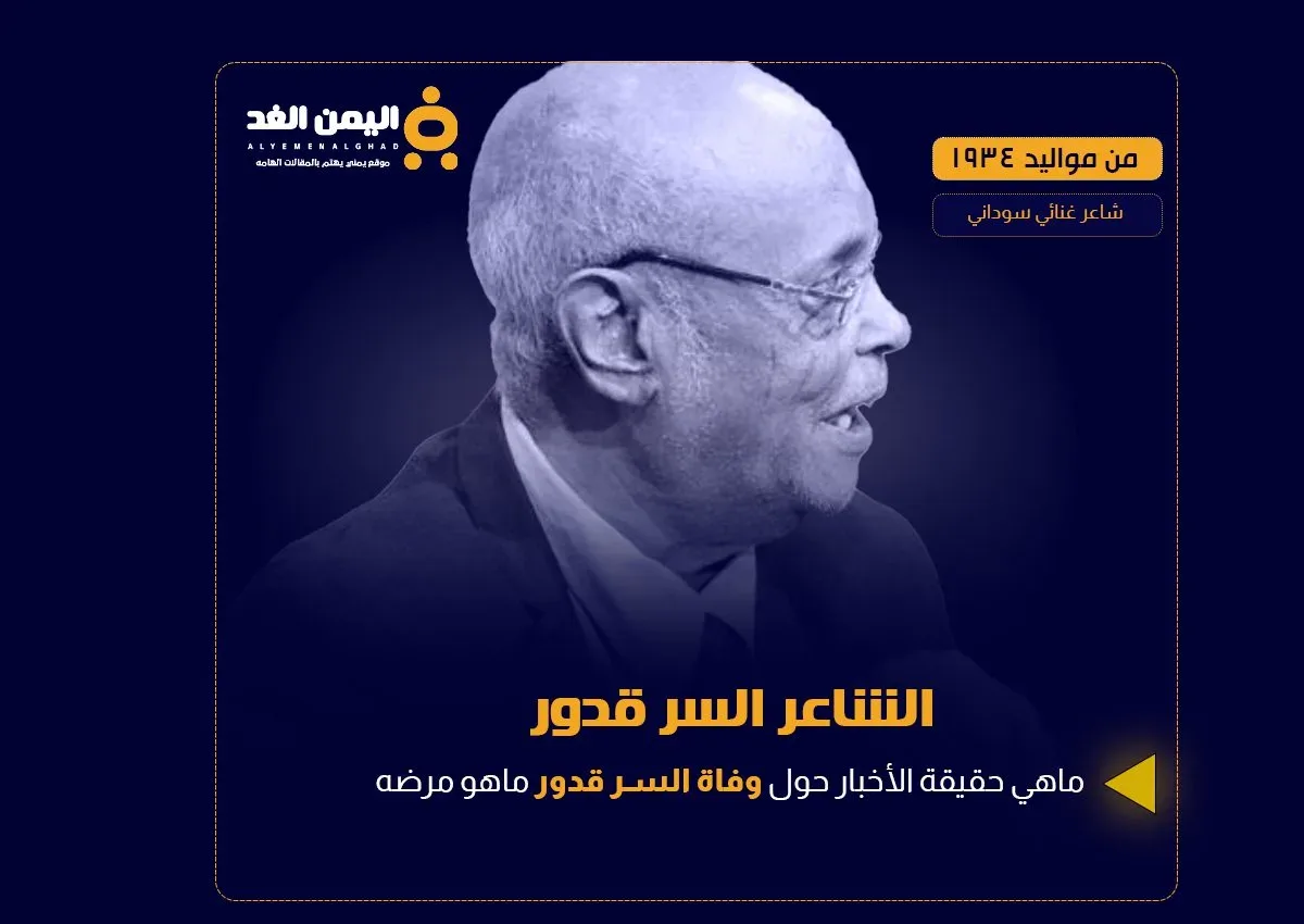 توفى الشاعر السوداني السر قدور صباح اليوم عن عمر ناهز 88 عام بعد معاناته مع المرض لفترة طويلة, ونعى العديد من الشعراء والأدباء والنشطاء عبر مواقع التواصل الإجتماعي بعد وفاة شاعر السودان السر قدور.
