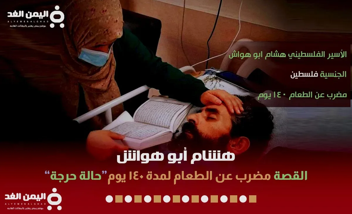 تحدثت المصادر حول الحالة الحرجة التي يعاني منها الأسير الفلسطيني هشام أبو هواش بعد ان قام بالإضراب لـ 140 يوم, وكانت السلطات والمنظمات قد حملت الكيان من إستشهاد هشام أبو هواش.
