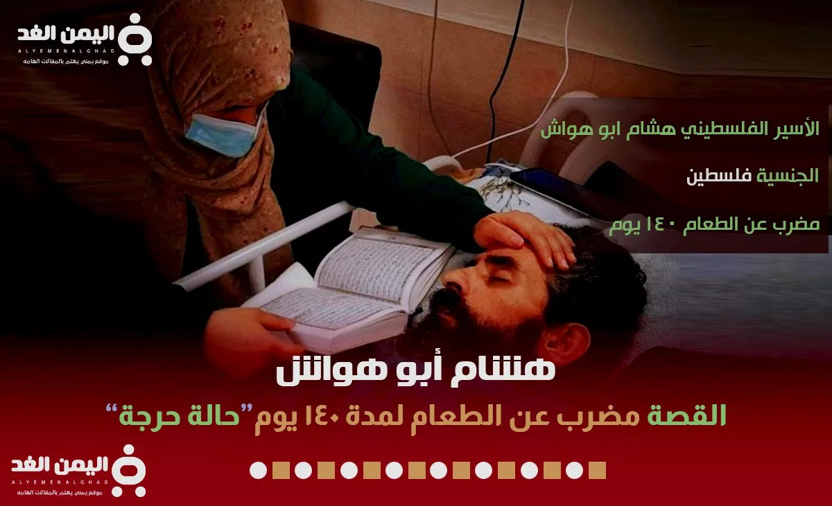 متابعينا على اليمن الغد نتحدث حول حديث الصحف الفلسطينية خلال الساعات الماضية وكذلك المواقع الإخبارية العربية والعالمية حول قضية الأسير الفلسطيني هشام أبو هواش والذي رفض الإعتقال الغير مبرر.