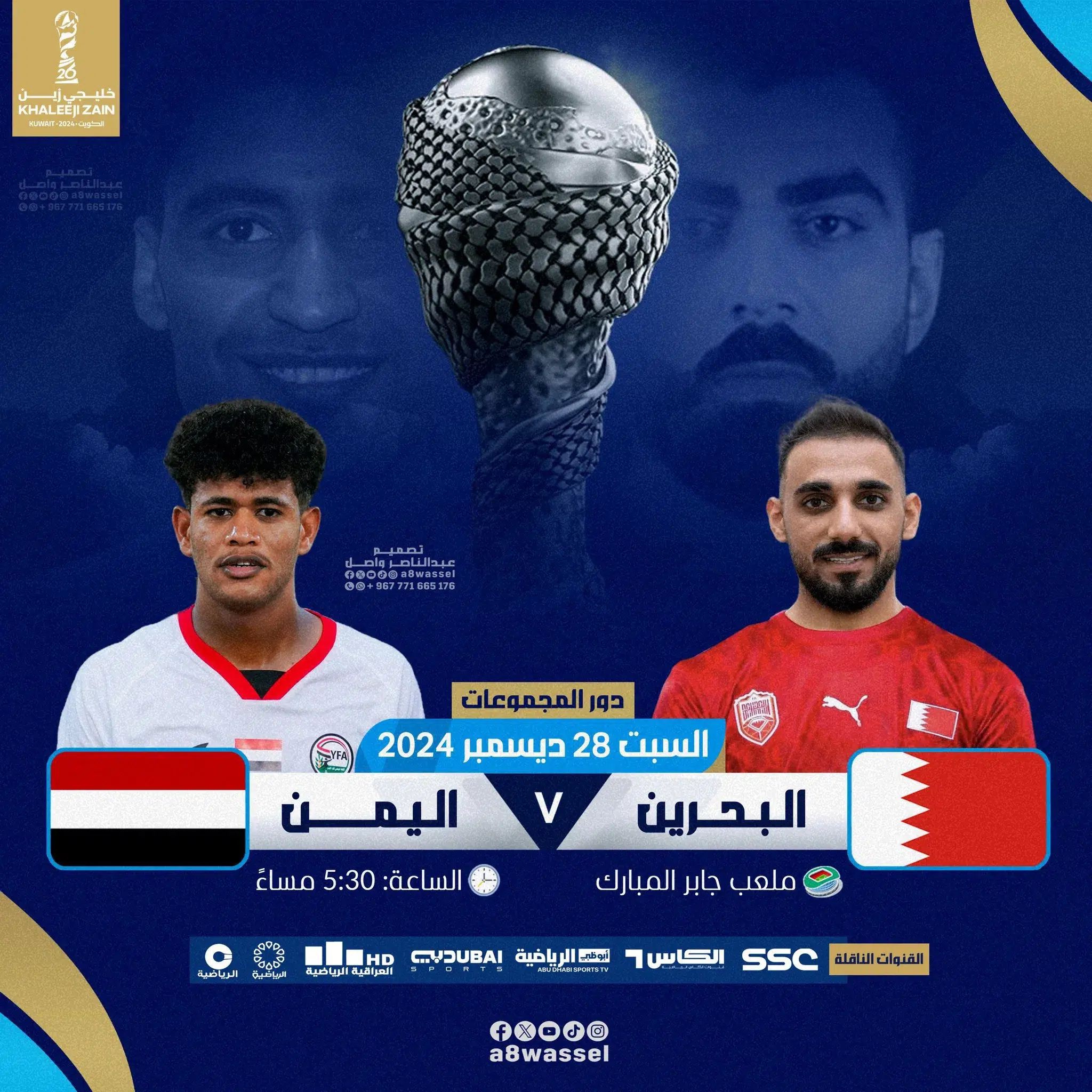 تنطلق مباراة اليمن والبحرين اليوم السبت 28 ديسمبر 2024 وذلك في تمام الساعة 5:25 من مساء اليوم بتوقيت صنعاء وتوقيت مكة المكرمة.