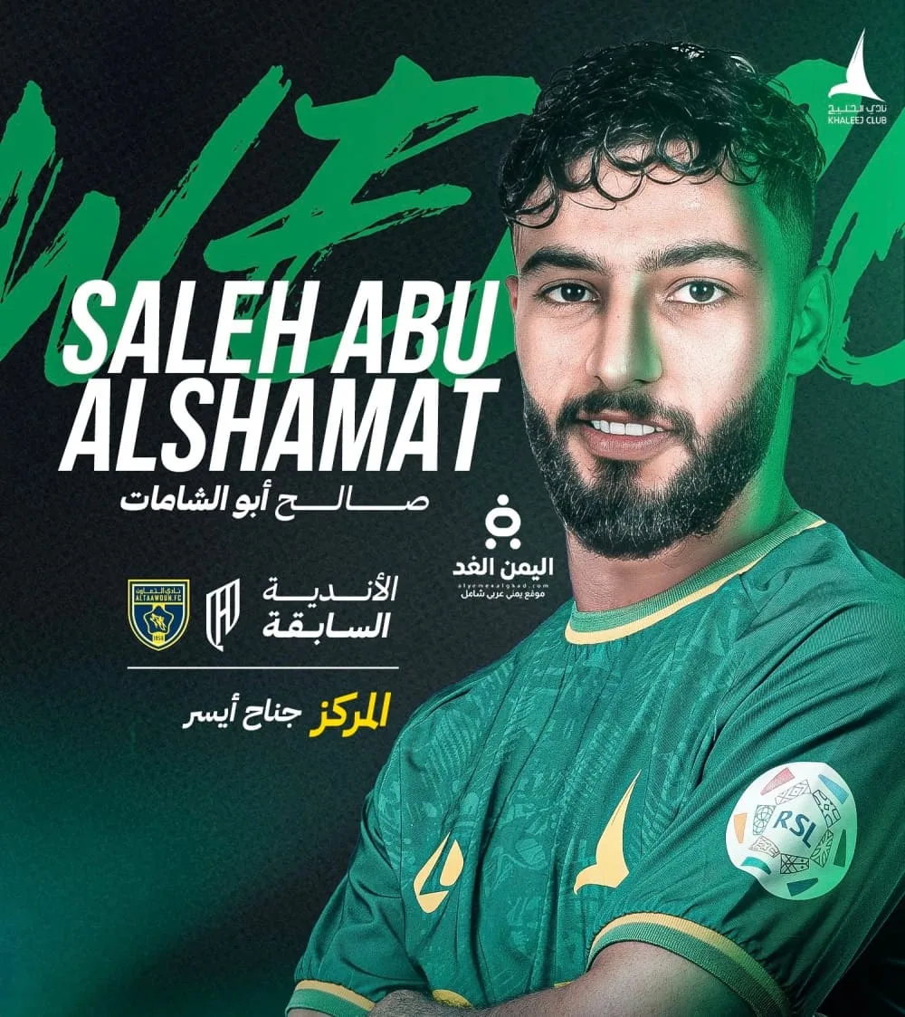 أعلن النادي الأهلي السعودي رسميًا عن تعاقده مع الجناح الأيسر صالح أبو الشامات، قادمًا من نادي الخليج، في صفقة بلغت قيمتها 9 ملايين ريال سعودي في صفقة تمتد إلى عام 2028.