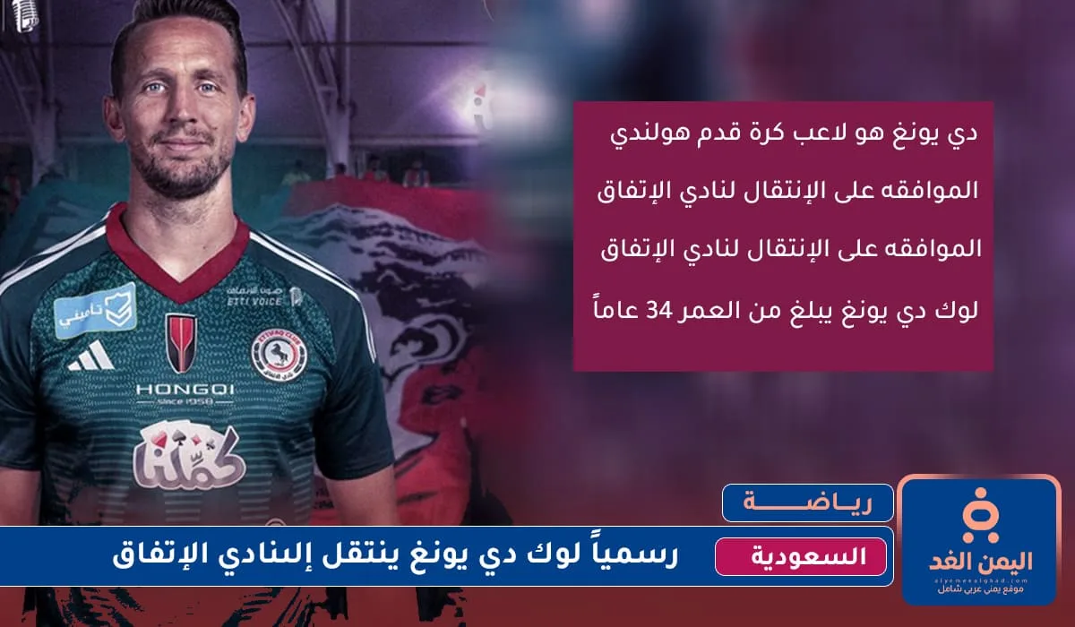 اللاعب في صفوف برشلونة لوك دي يونغ التعاقد للإنتقال الحر بشكل رسمي إلى صفوف نادي الإتفاق السعودي في صفقة تراها إدارة نادي الإتفاق بأنها سوف تحمل العديد من الإنجازات والإنتصارات خلال الفترة المستقبلية.